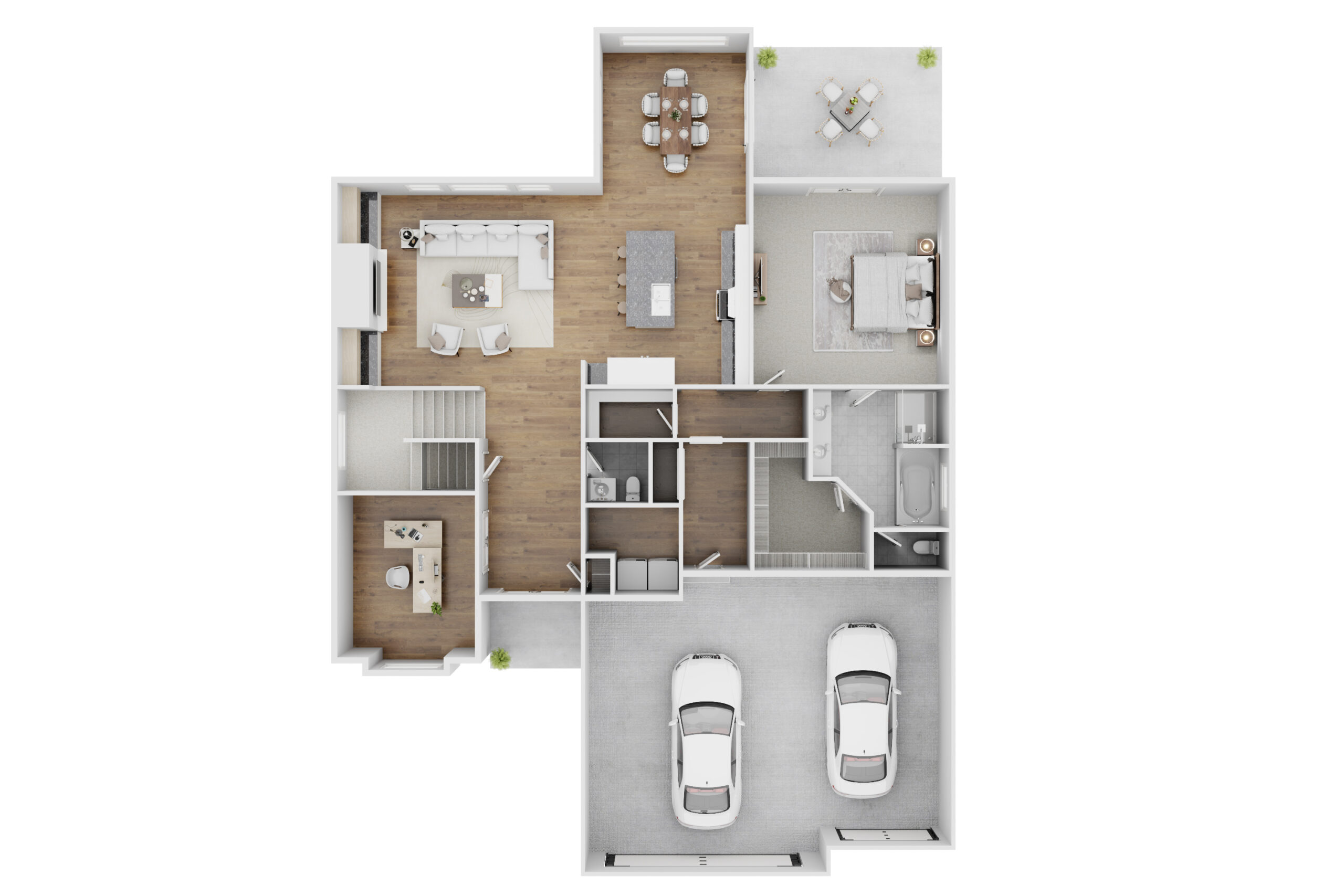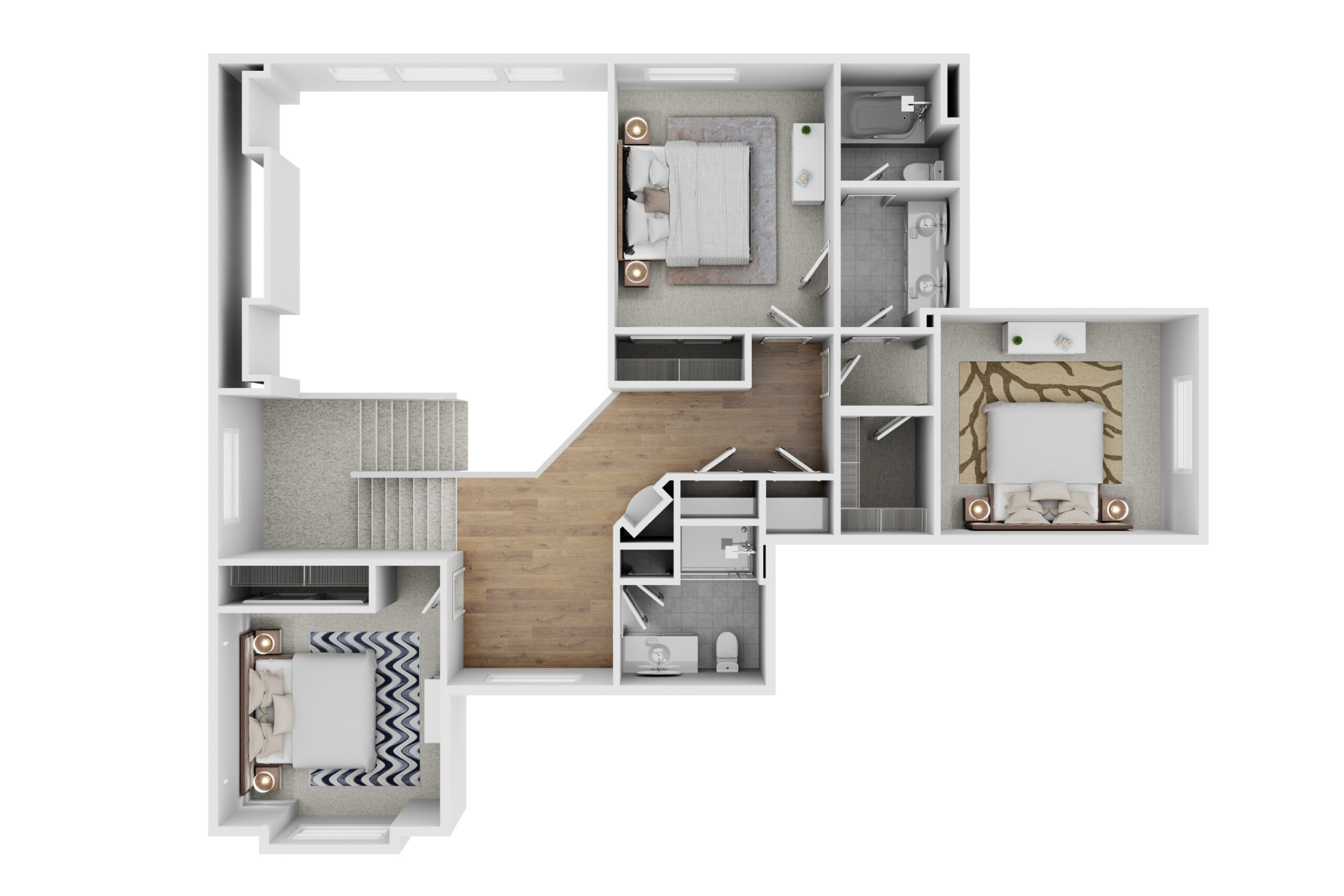 Experience the pinnacle of sophisticated living with the Vista floorplan. Thoughtfully designed across three finished levels to balance grand entertaining with serene privacy. The heart of the home resides on the 1,797 sq ft main floor, where an elegant foyer leads into a light-filled great room and a gourmet kitchen complete with a dedicated pantry. This level is anchored by a secluded primary suite, featuring a sprawling bedroom, a spa-inspired bathroom, and a massive walk-in closet. Ascending to the 907 sq ft second floor, you are greeted by an airy loft that overlooks the lower levels, serving as a gateway to three additional well-appointed bedrooms and two full baths. The home’s allure extends to the 1,182 sq ft lower level, a premier destination for leisure boasting a massive rec room, a professional-grade bar, and a private guest suite. Completing this home is a 620 sq ft three-car garage (4-car option also available) and a welcoming front porch, ensuring every functional need is met with unrivaled style.